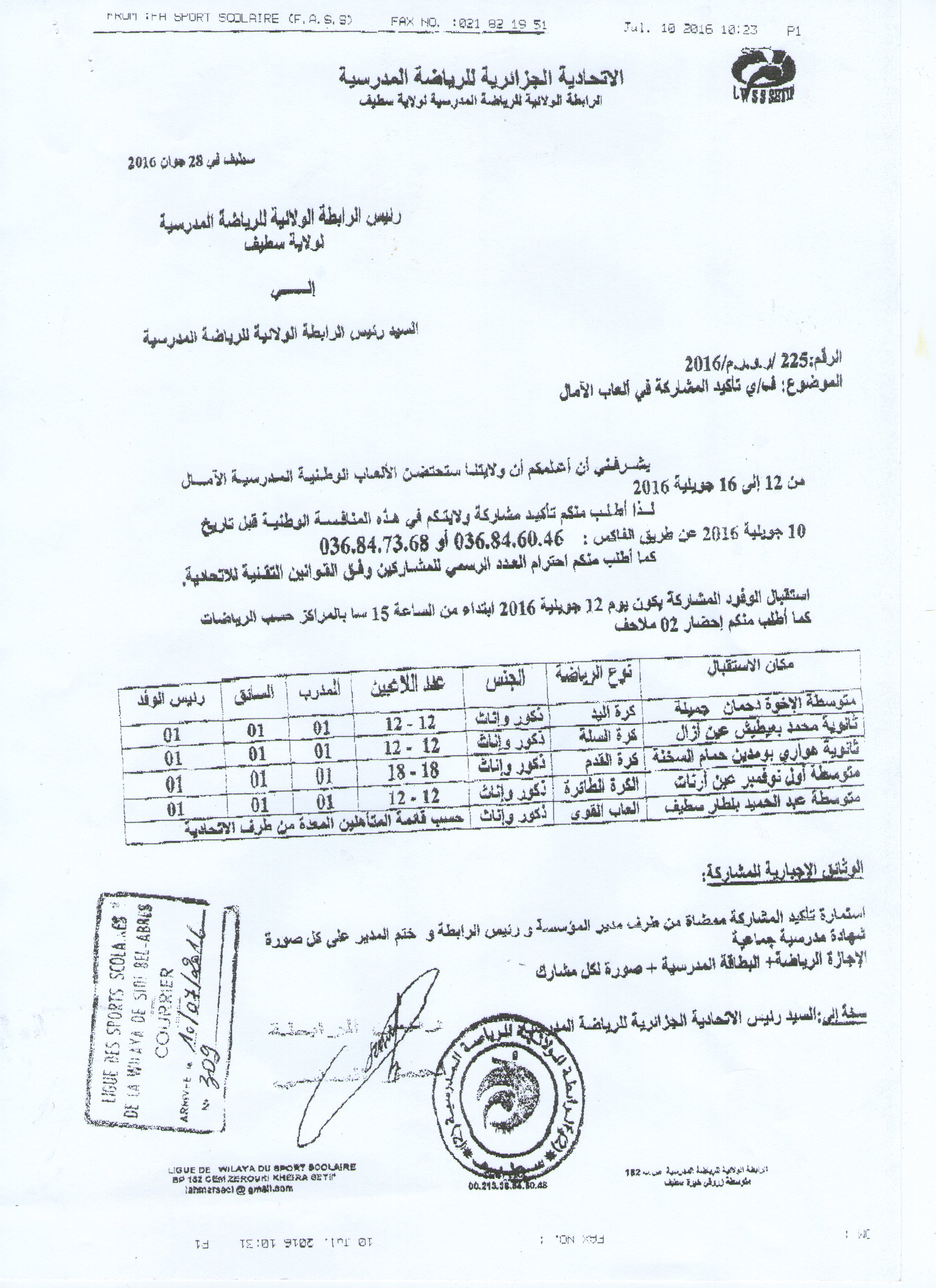 ستحتضن ولاية سطيف الألعاب الوطنية المدرسية للآمال 2016/2015، من 12 إلى 16 جويلية 2016، حيث تأهل من ولايتنا النعامة فريق…