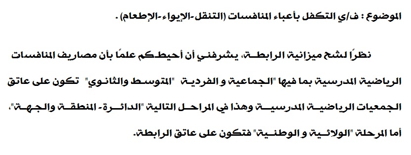 التكفل بأعباء المنافسات (التنقل-الإيواء-الإطعام)