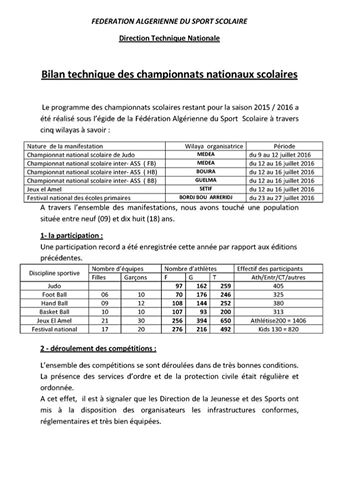 إليكم ما تبقى من المنافسات الوطنية المدرسية للموسم 2016/2015