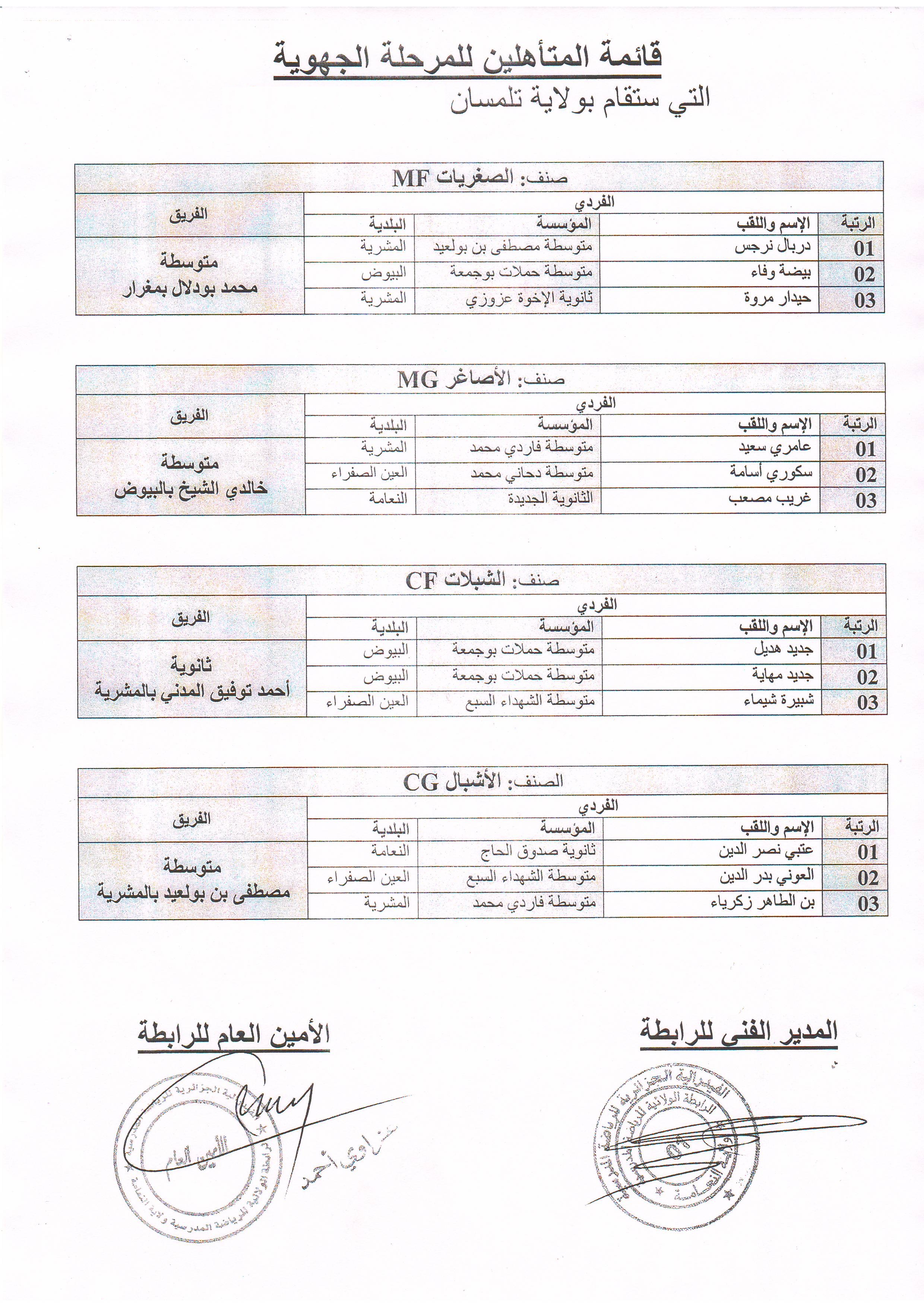 2 ـ قوائم التلاميذ المشاركين تبعث إلى المشرفين على البلديات