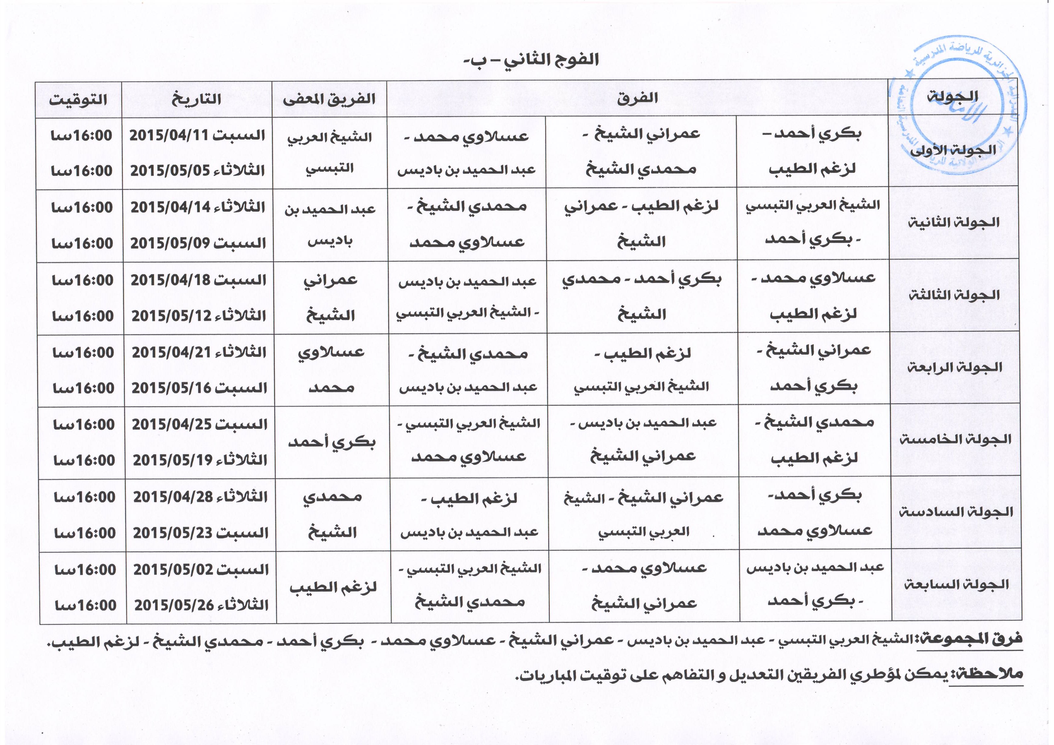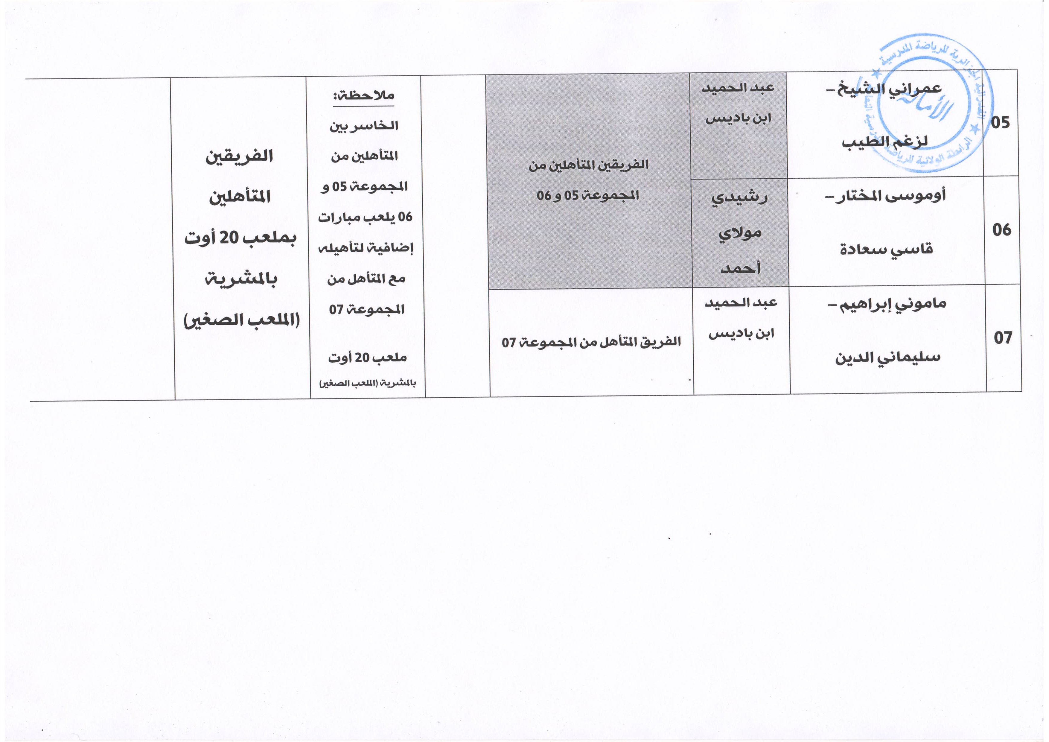 إليكم جدول المباريات الخاصة بكرة القدم للمدارس الإبتدائية و كأس الرابطة لمقاطعة المشرية