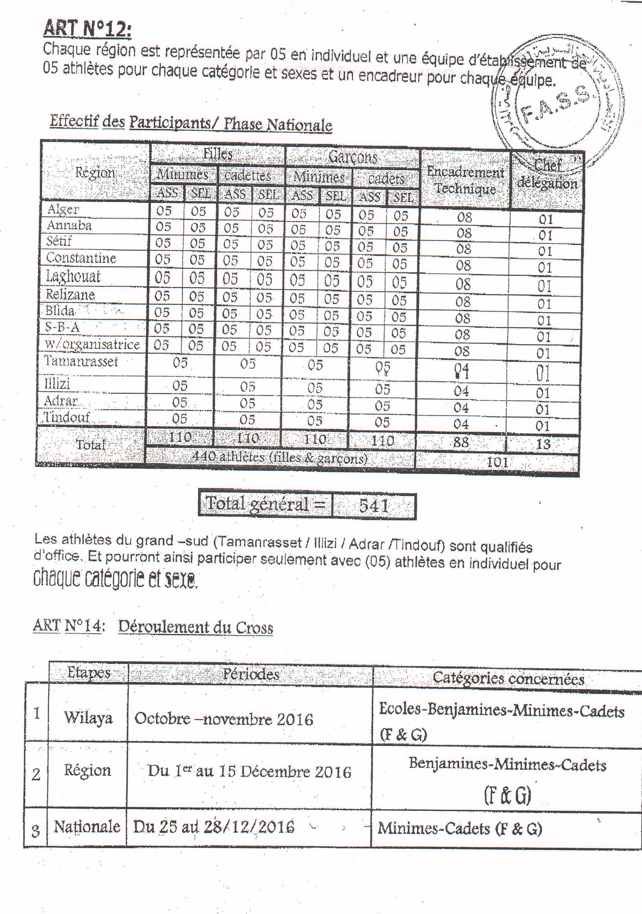 القانون التقني للبطولة الوطنية المدرسية للعدو الريفي 2017/2016