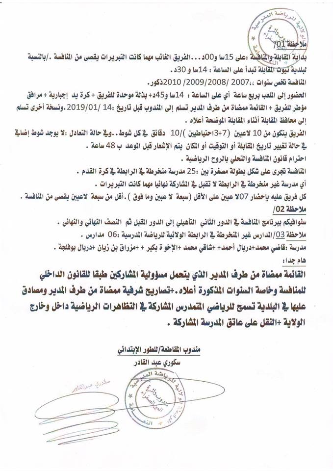 برنامج المقابلات الرسمية في البطولة الولائية لكرة القدم / الدور التمهيدي .. من 15 جانفي 2019 إلى 05 فبراير 2019.