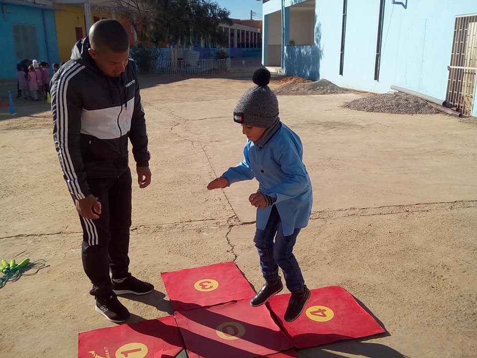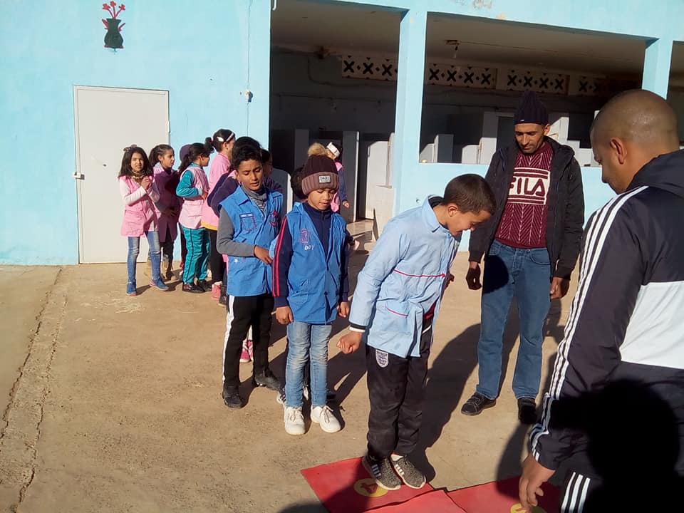 أساتذة الرابطة هذا الصباح في نشاط خفيف أثناء الإستراحة بمدرسة أوموسى المختار بالمشرية مع تلاميذ المدرسة و الأقسام التحضيرية للتفويج عن الأطفال بورشتين لألعاب القوى للأطفال Kid’s Athletics ، حيث أعجب الأطفال بهذه الرياضة المخصصة لتلاميذ المدارس الإبتدائية.