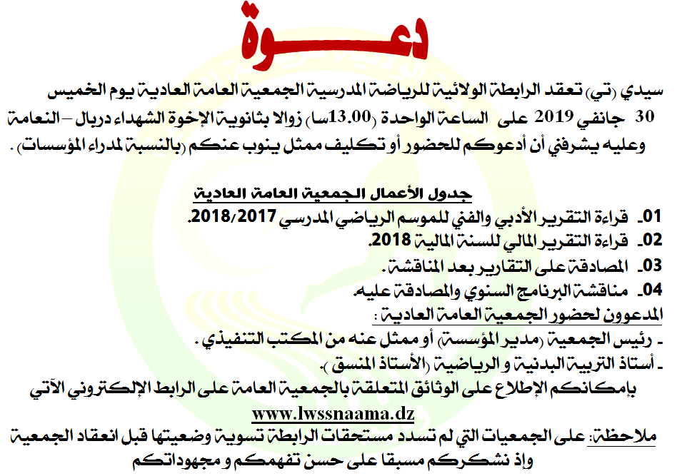 تحضيرا للإحتفال بالذكرى الـ 70 لإندلاع الثورة التحريرية تحت شعار #نوفمبر_المجيد_وفاء_وتجديد #العدو_الريفي #مرحلة_البلدية برنامج العدو الريفي المدرسي عبر 12 بلدية من ولاية النعامة. #التاريخ: الثلاثاء 29 أكتوبر 2024 بداية من الساعة التاسعة صباحا