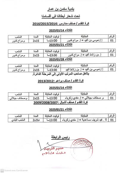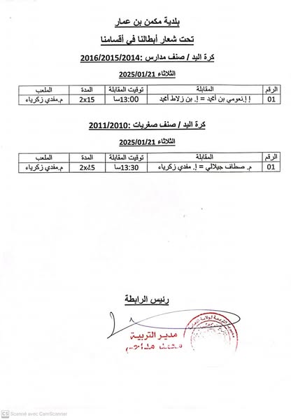 برنامج تصفيات البطولة الوطنية للرياضات الجماعية في مرحلتها البلدية - مكمن بن عمار- كرة القدم وكرة اليد