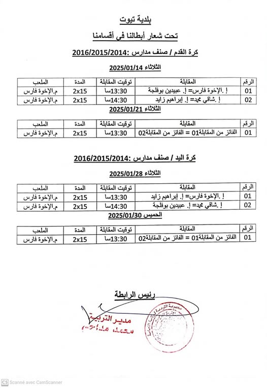 برنامج تصفيات البطولة الوطنية للرياضات الجماعية في مرحلتها البلدية - تيوت - كرة القدم وكرة اليد