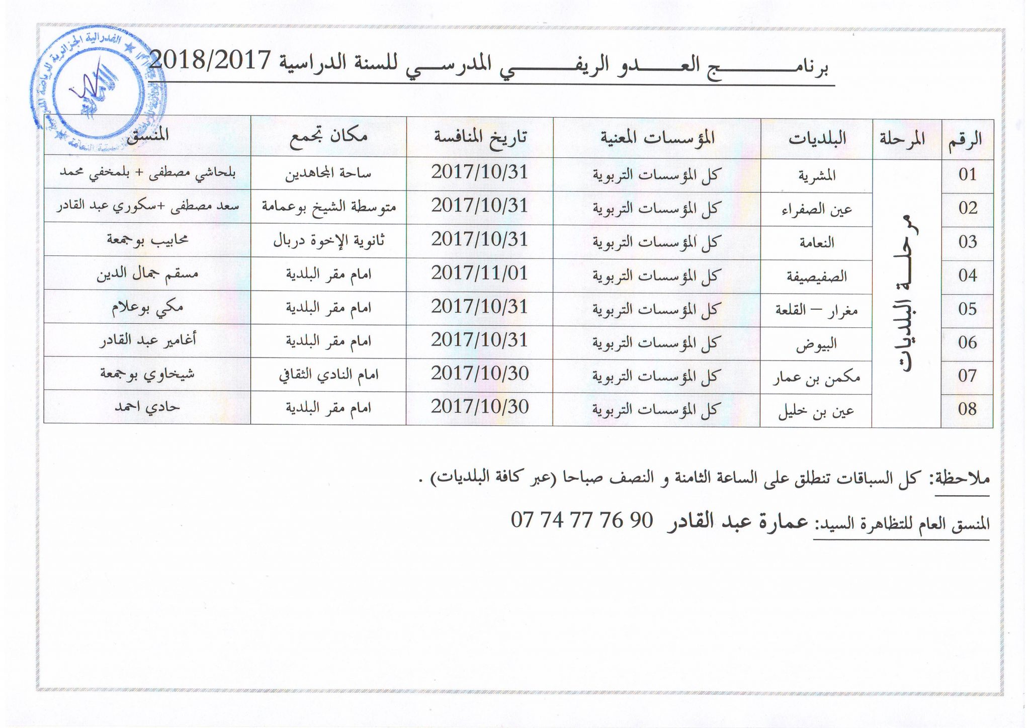 برنامج تصفيات البطولة الوطنية للرياضات الجماعية في مرحلتها البلدية – مغرار