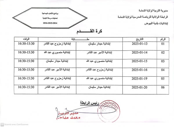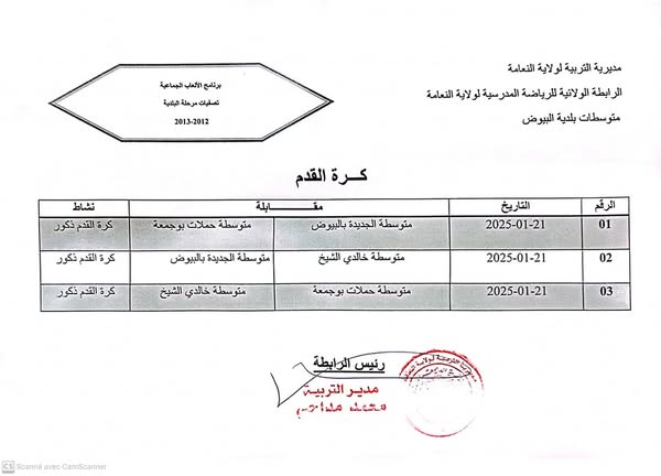برنامج تصفيات البطولة الوطنية للرياضات الجماعية في مرحلتها البلدية – البيوض – كرة القدم
