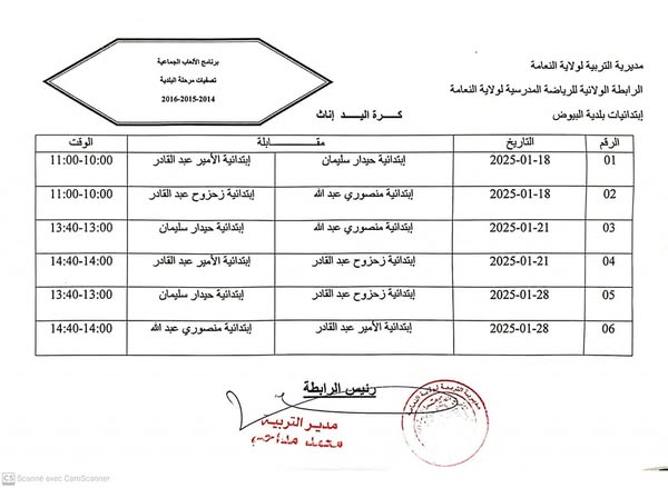 برنامج تصفيات البطولة الوطنية للرياضات الجماعية في مرحلتها البلدية – البيوض