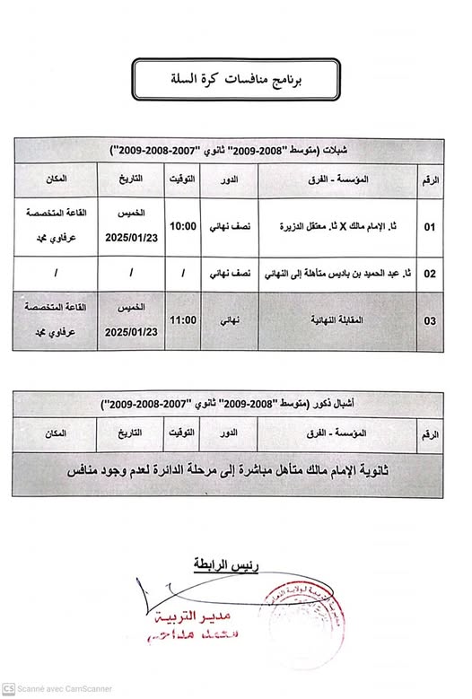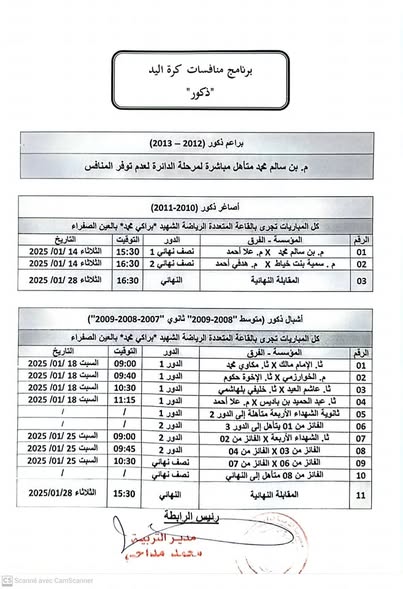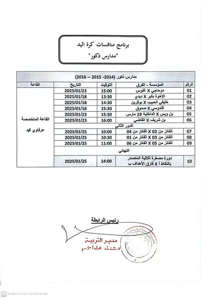 برنامج تصفيات البطولة الوطنية للرياضات الجماعية في مرحلتها البلدية – العين الصفراء