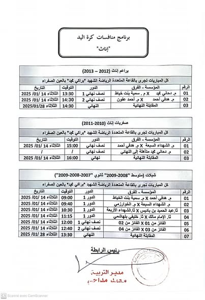 برنامج تصفيات البطولة الوطنية للرياضات الجماعية في مرحلتها البلدية – العين الصفراء – كرة اليد – ذكور وإناث